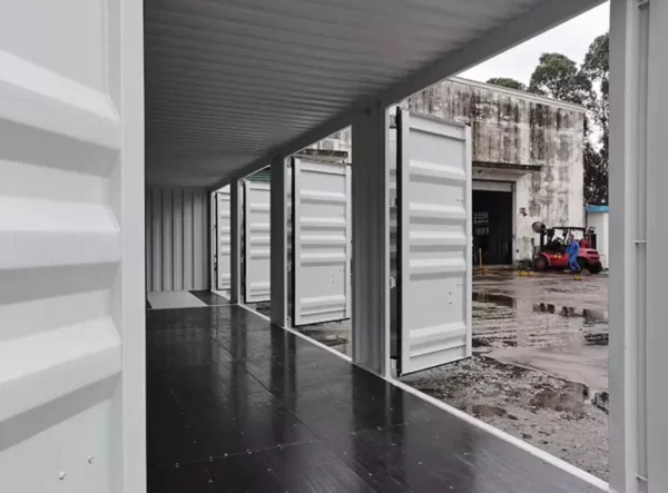 Contenedor 40 pies HC de segunda mano con puertas dobles, ideal para almacenamiento en obras, almacenes o en casa. Fabricado en acero resistente con un piso de madera tratada. Capacidad de 31 m³ y carga máxima de 11 000 kg. Opciones personalizables disponibles (instalación eléctrica, piso de acero, colores específicos).