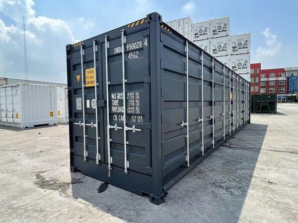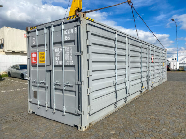 Contenedor 40′ HC con apertura lateral completa. Gran capacidad, fácil acceso, certificado CSC. Ideal para transporte o almacenamiento de gran volumen.