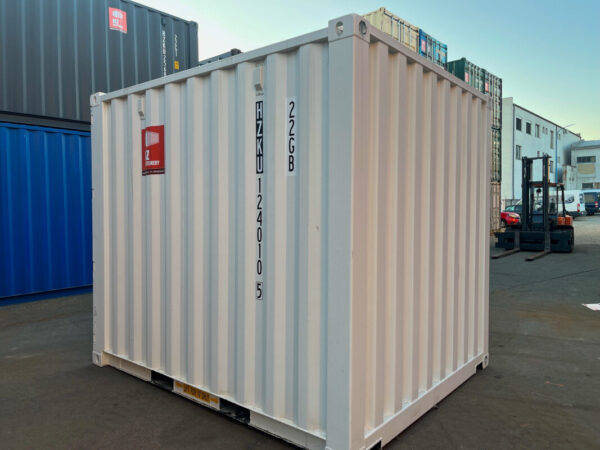 Contenedor marítimo de 10 pies nuevo, color rojo, en acero corten. Perfecto para almacenamiento seguro en espacios reducidos. Entrega inmediata desde depósito.